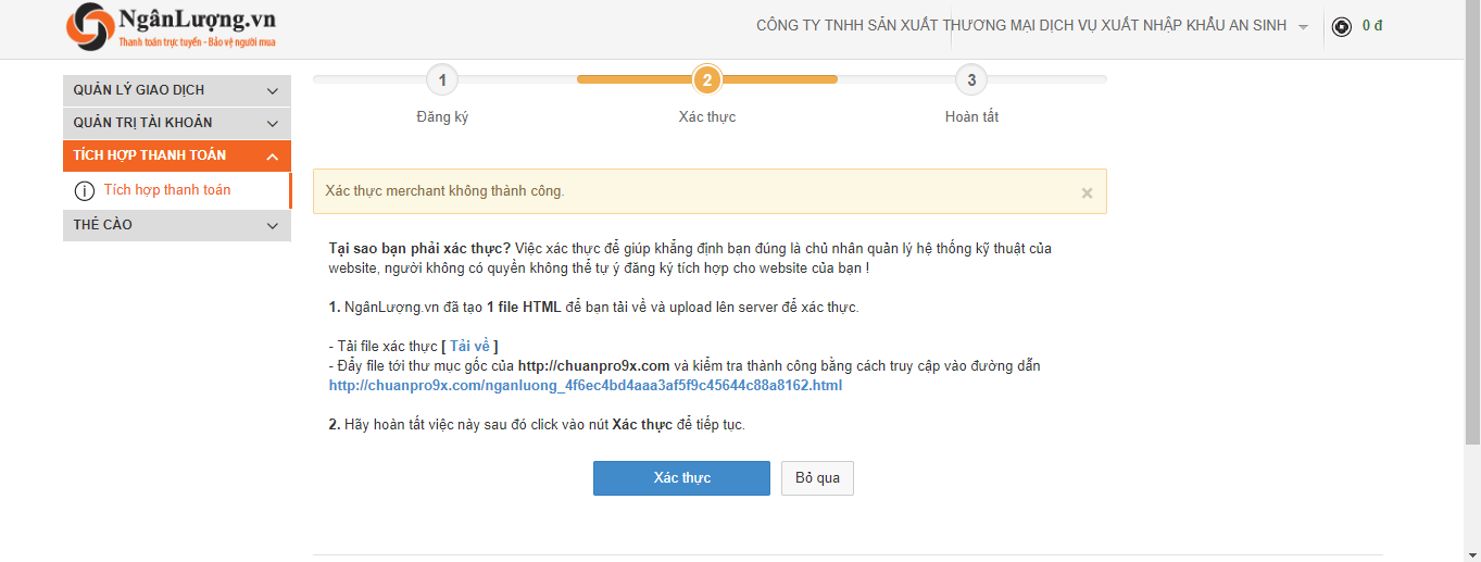 Nhà bán hàng có thể Chứng thực bằng cách tải file hình CMND hoặc Hộ chiếu. Ngân lượng sẽ trả lời yêu cầu chứng thực trong khoảng 3 giờ làm việc.