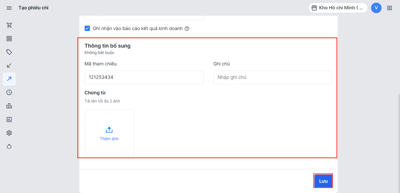 Thêm thông tin chứng từ để nhà bán hàng có thể dễ dàng đối chiếu với phiếu chi (nếu có)