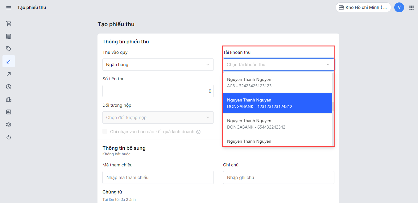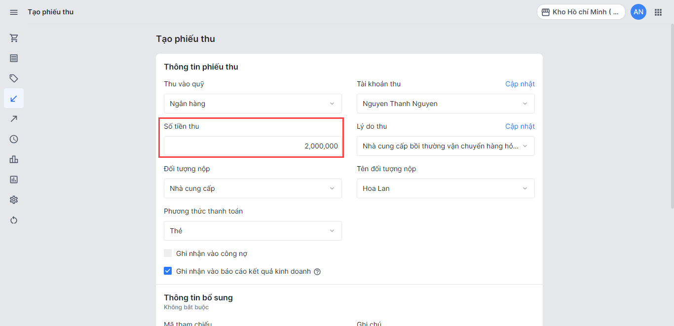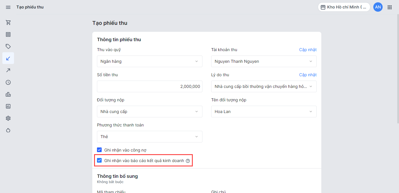 Thêm thông tin chứng từ để nhà bán hàng có thể dễ dàng đối chiếu với phiếu thu