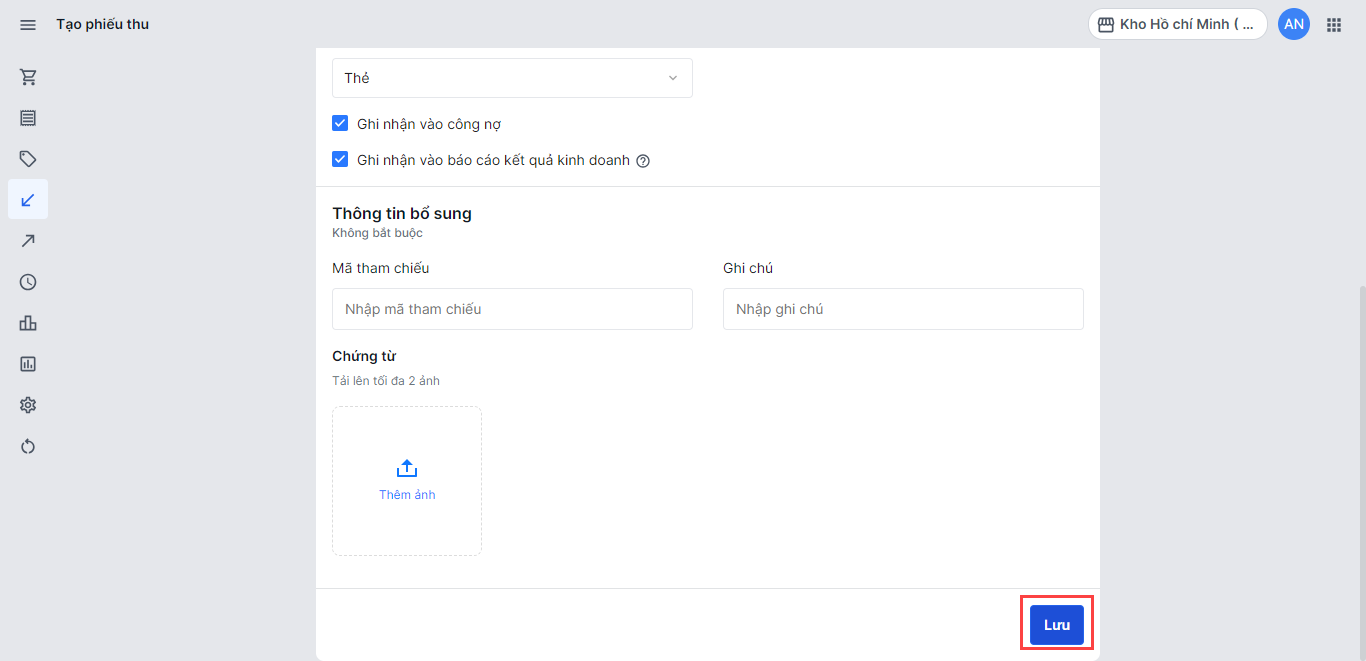 Chọn Lưu để tạo phiếu thu