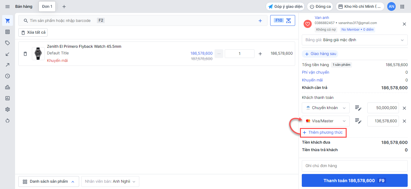Trong trường hợp người mua thanh toán thông qua nhiều hình thức thanh toán khác nhau, bạn cũng có thể chọn Thêm phương thức
