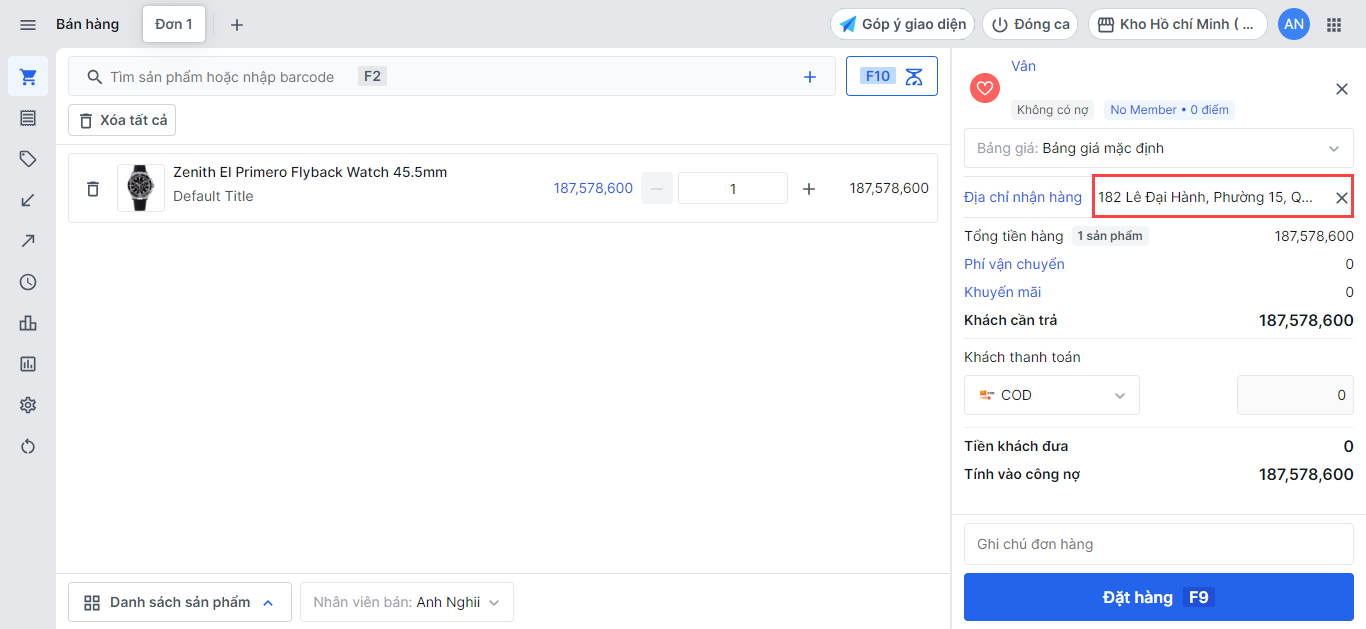 Hệ thống sẽ lấy địa chỉ đã lưu trước đó của khách hàng làm địa chỉ giao hàng (với khách hàng đã từng mua hàng trước đây)
