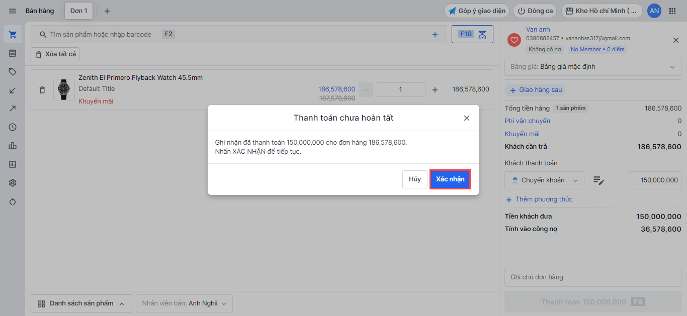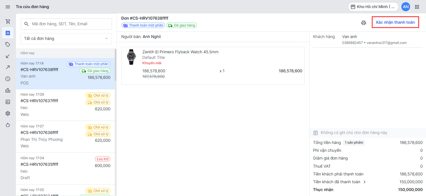 Tại đơn hàng, bạn chọn Xác nhận thanh toán và chọn Thanh toán