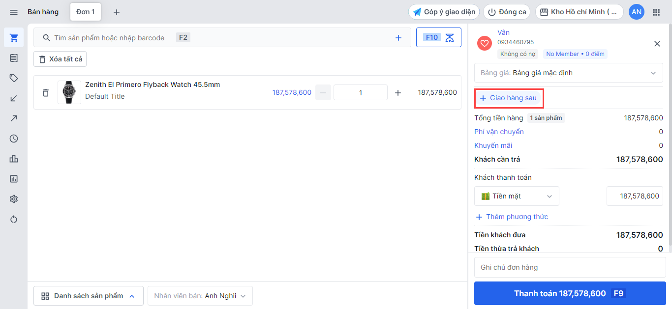 - Tạo đơn hàng giao sau (không bắt buộc)