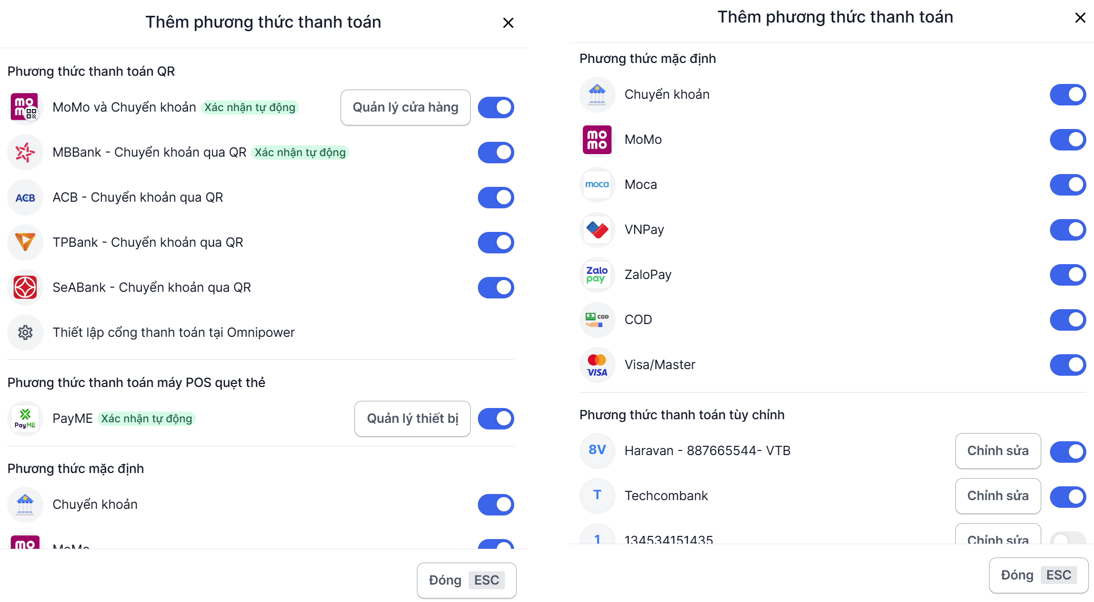 Một số hình thức thanh toán Haravan hỗ trợ:
