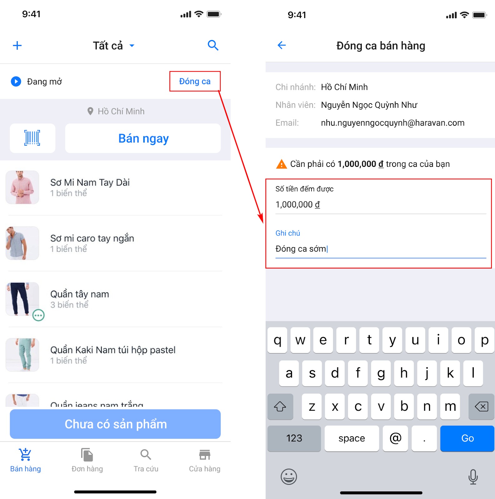 Hướng dẫn mở ca/đóng ca bán hàng trên ứng dụng Haravan POS