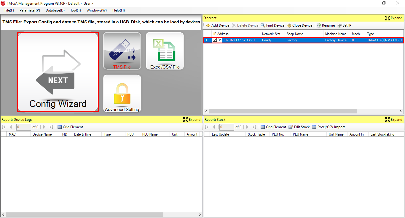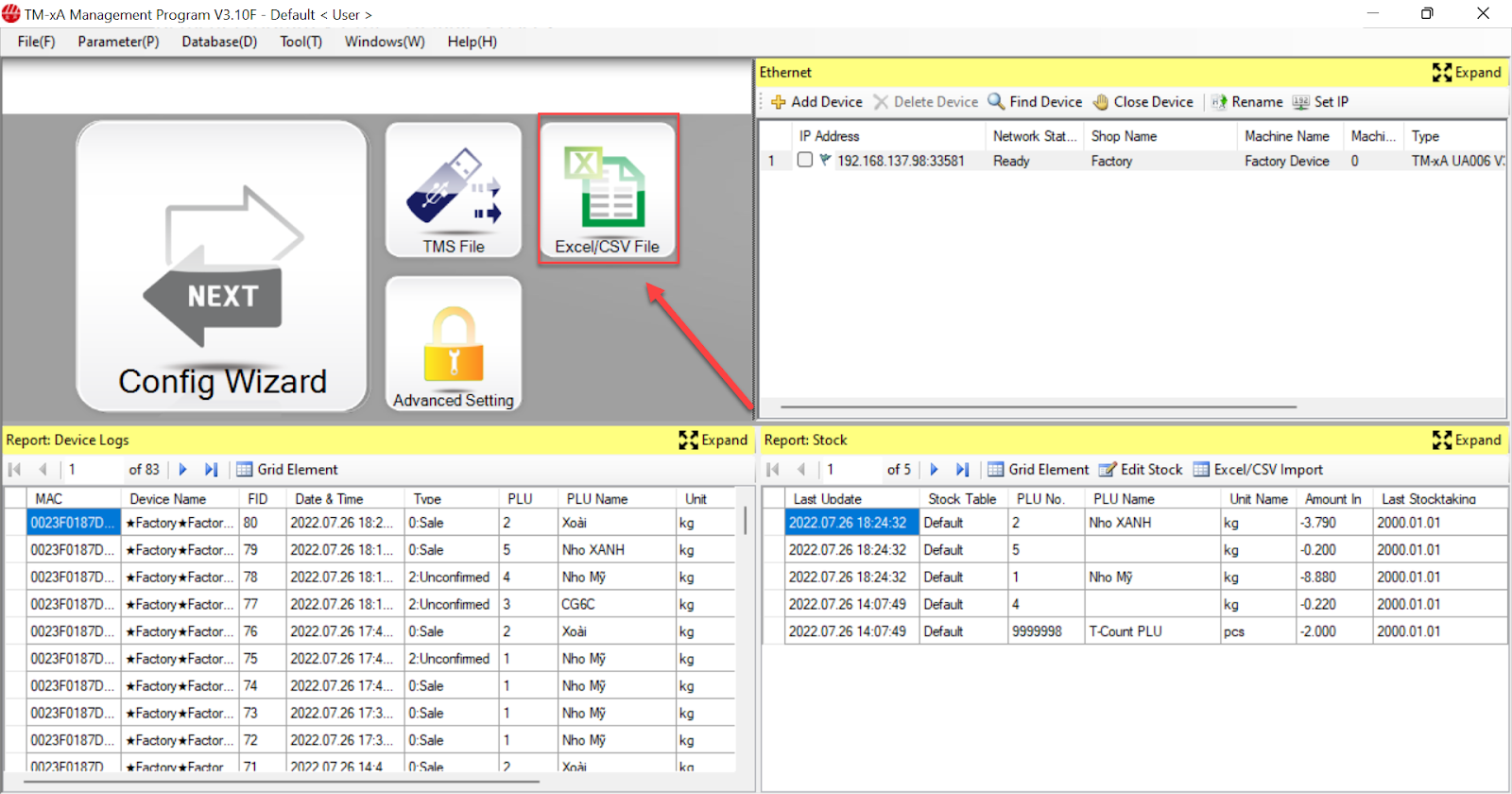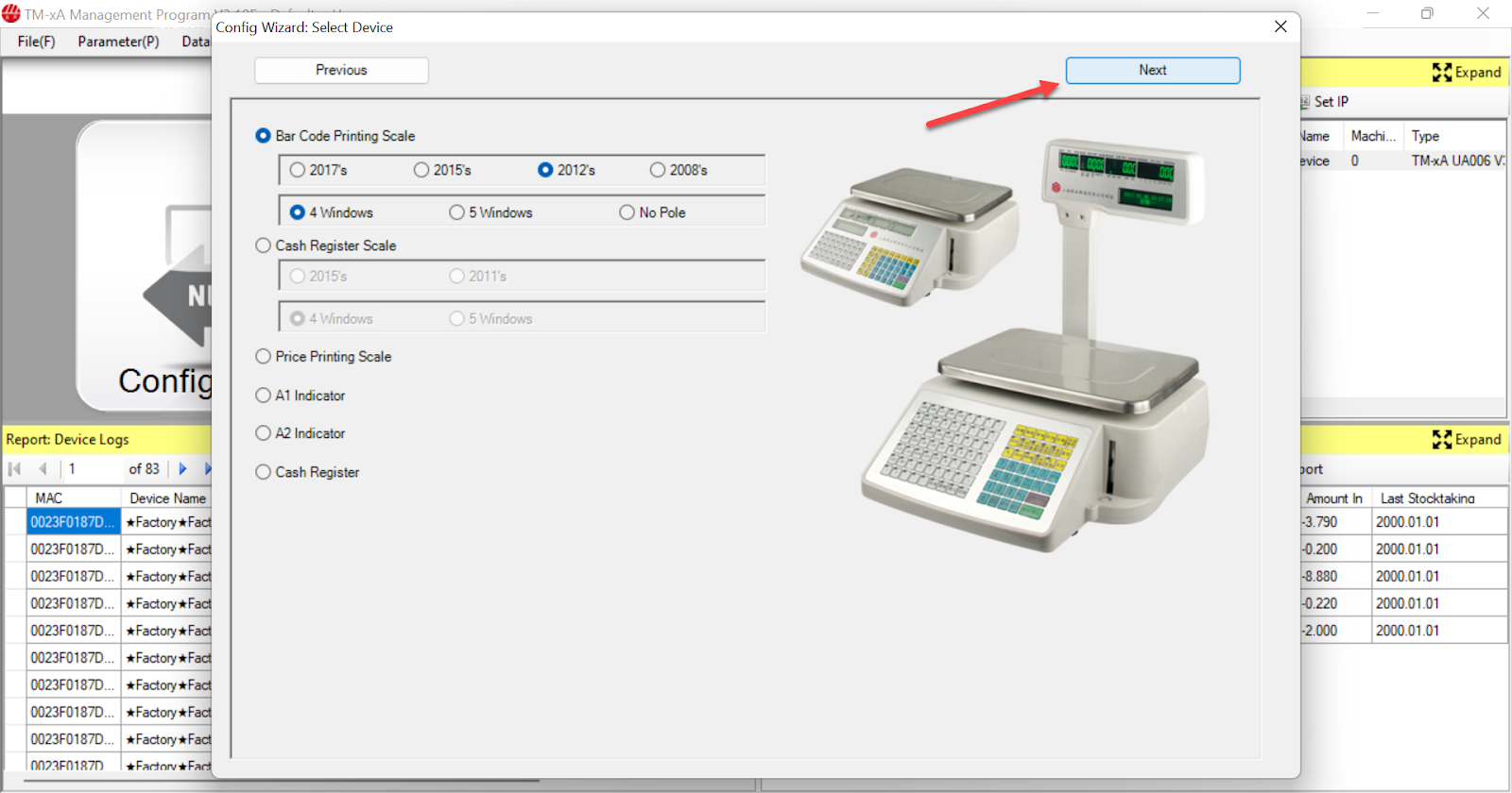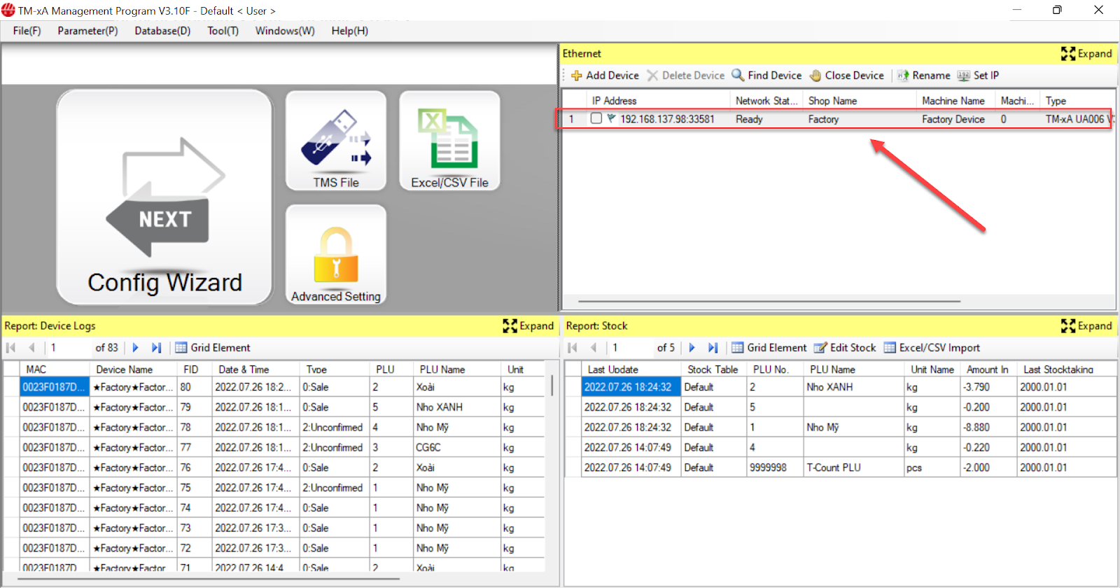 - Tại màn hình máy tính, bạn chọn địa chỉ IP của cân và chọn Config Wizard