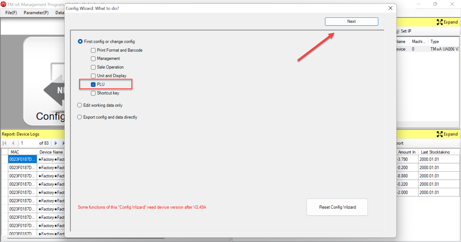 - Chọn PLU → Nhấn Next