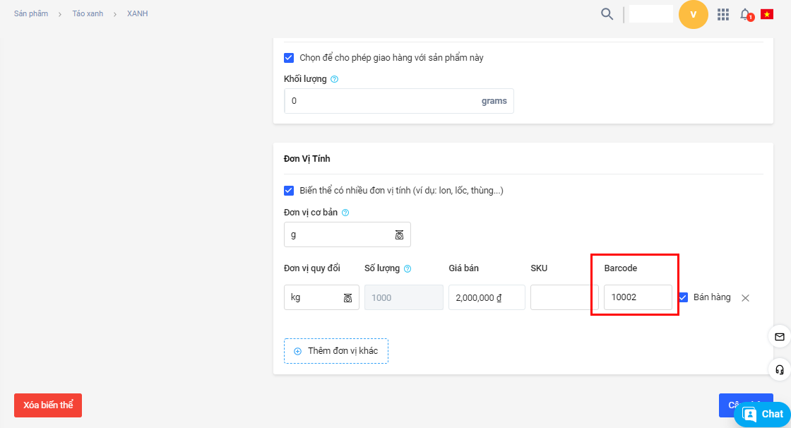 - Đơn vị tính của sản phẩm/biến thể phải có barcode: với loại cân điện tử này, barcode cần có 5 chữ số
