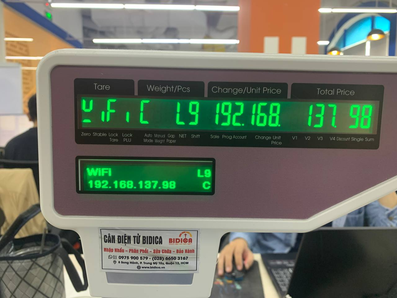Màn hình cân sẽ hiển thị IP trùng với IP trên máy tính, lúc này, bạn đã kết nối máy tính và cân điện tử thành công