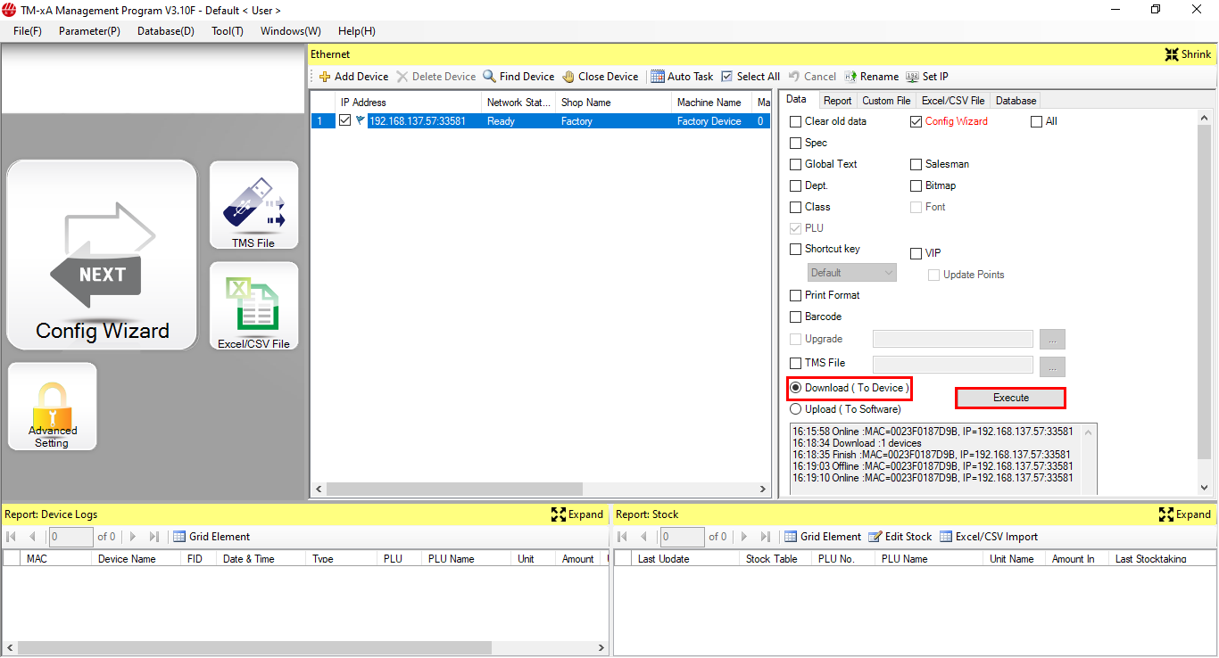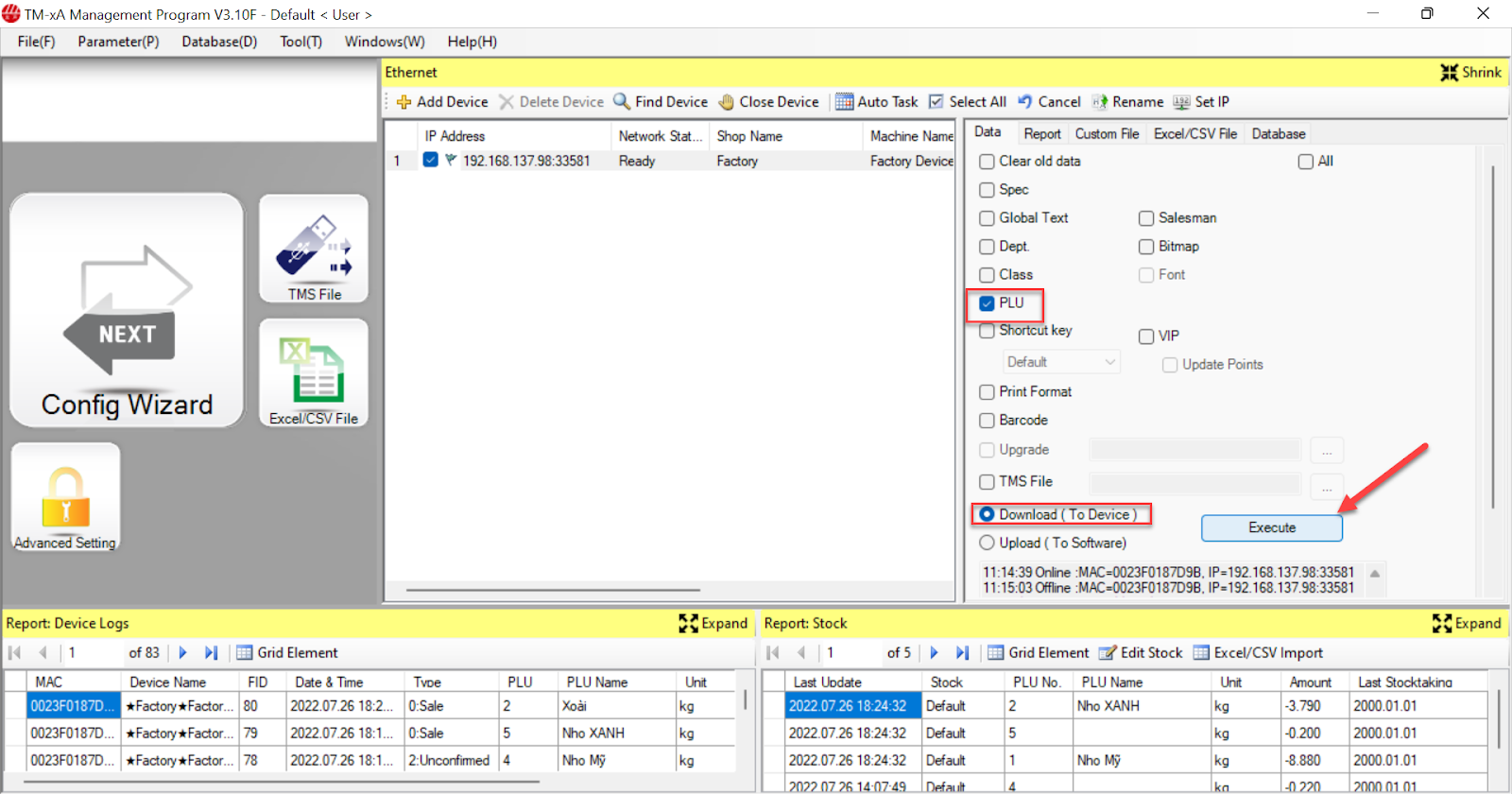 - Bạn chọn Download (To Device) và chọn Execute. Vậy là bạn đã hoàn tất việc nhập thông tin sản phẩm lên cân.