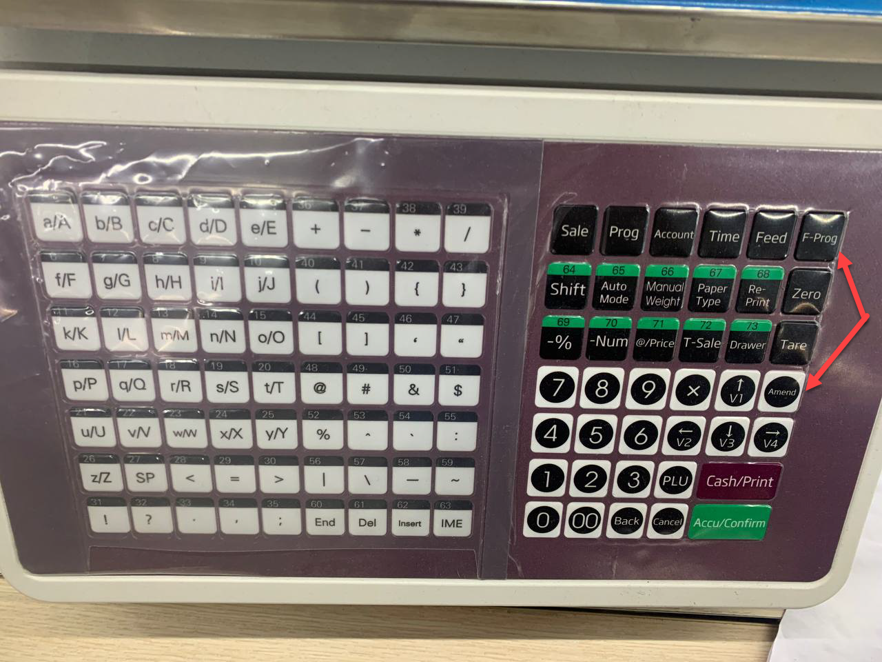 - Bấm nút Prog → Bấm nút 4 và 2 → Bấm đồng thời tổ hợp phím F-Prog và Amend