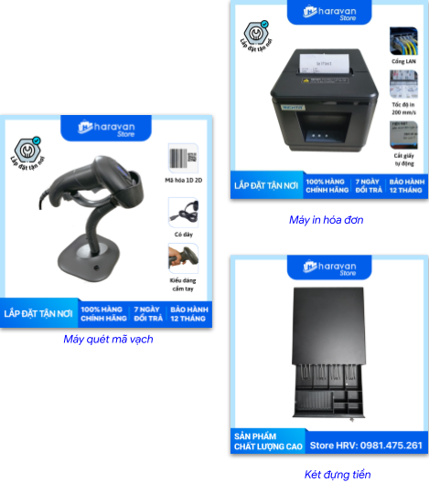 - Máy quét barcode: Dùng để quét mã vạch sản phẩm, giúp nhập liệu nhanh chóng và chính xác.