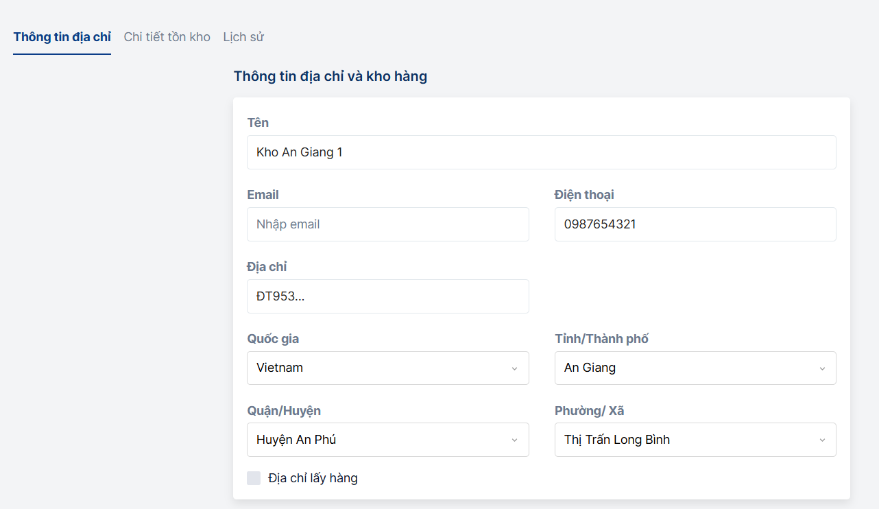 - Cài đặt địa chỉ là “Địa chỉ lấy hàng” hay đang ở trạng thái “Tồn kho không khả dụng”.