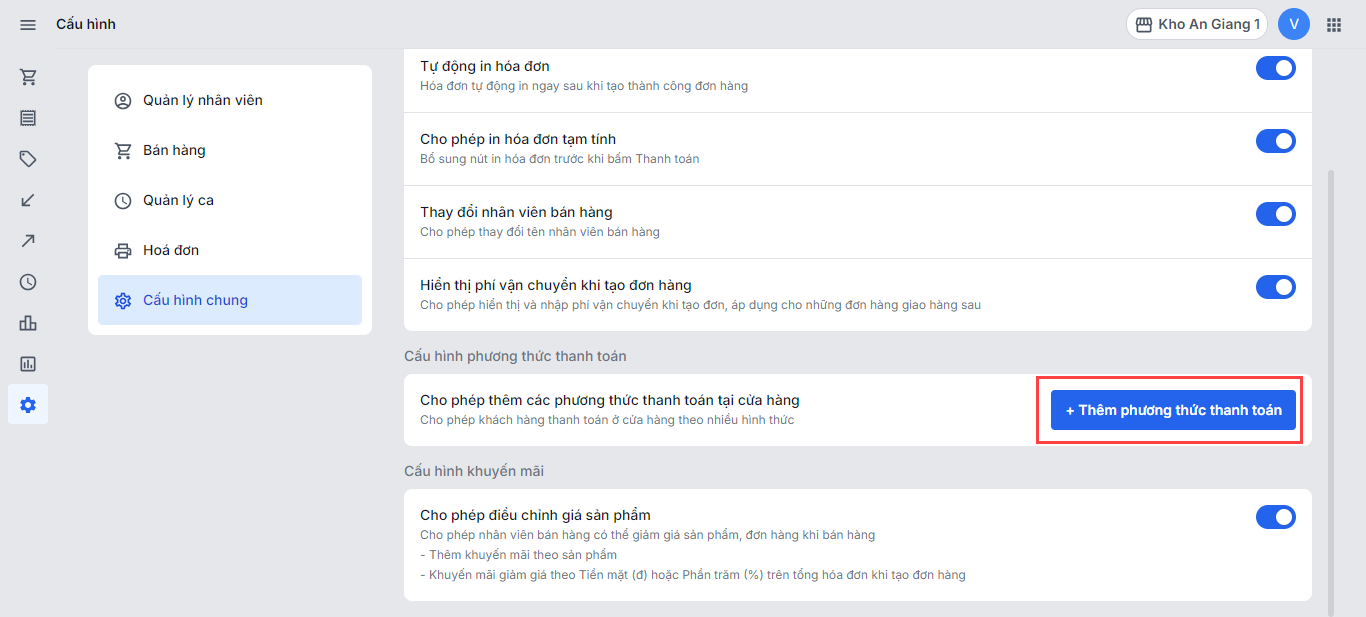 Bước 2Kích hoạt phương thức MoMo QR ở cấu hình chung trên Haravan POS