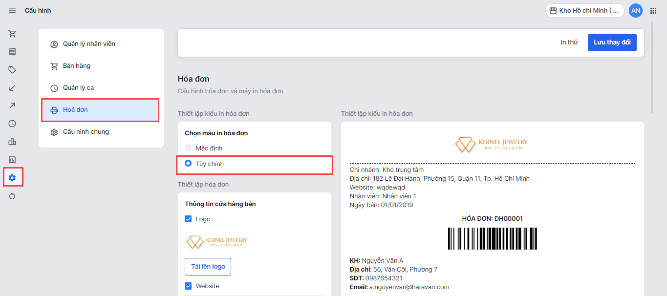 Thiết lập mẫu in hóa đơn tùy chỉnh