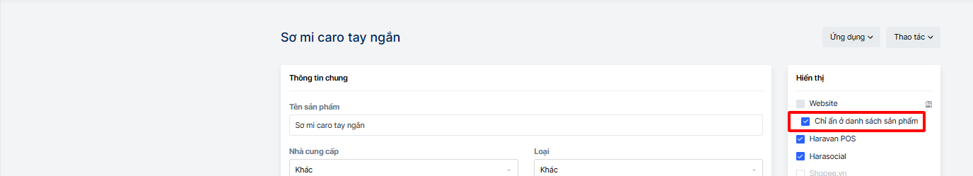 Hiện tại, trong phần thiết lập sản phẩm có tùy chọn 'Chỉ ẩn ở danh sách sản phẩm'. Khi bật tính năng này, sản phẩm sẽ không hiển thị trên trang danh sách sản phẩm và cũng không thể tìm kiếm được. Tuy nhiên, lưu ý là sản phẩm sẽ không thể đặt mua – khách hàng sẽ không thể thực hiện thao tác mua hàng với sản phẩm này