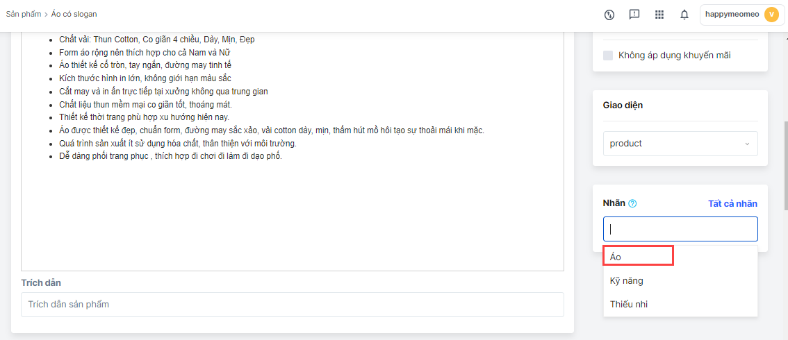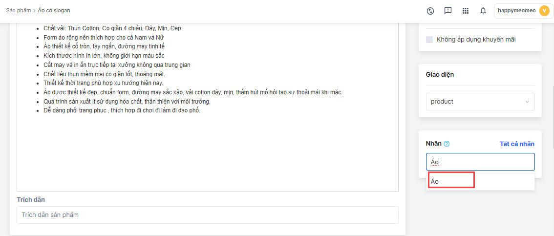 Bạn vào trang chi tiết sản phẩm cần gắn nhãn