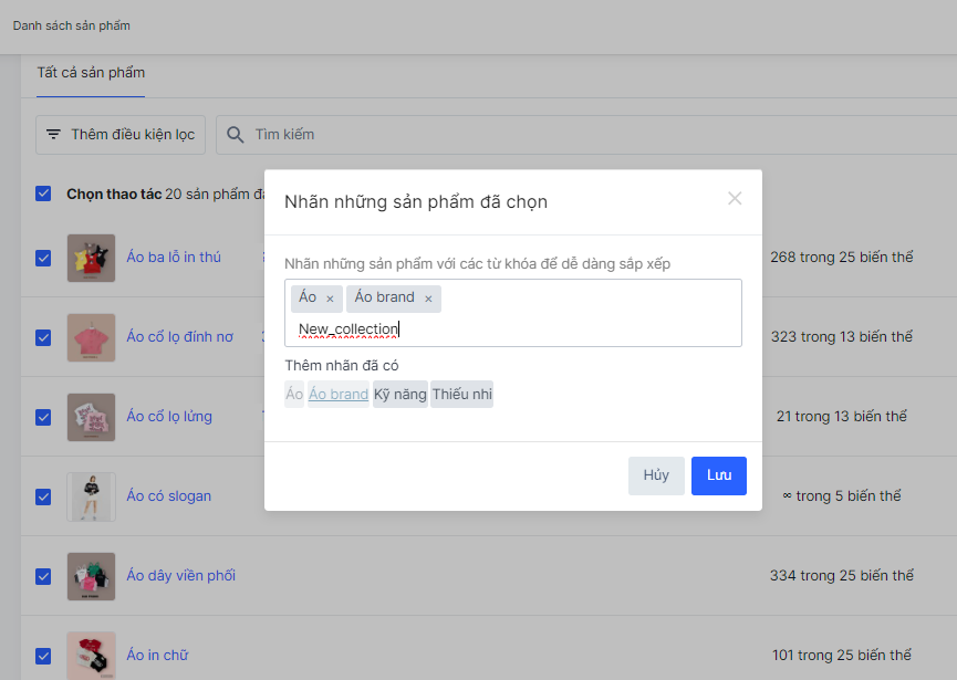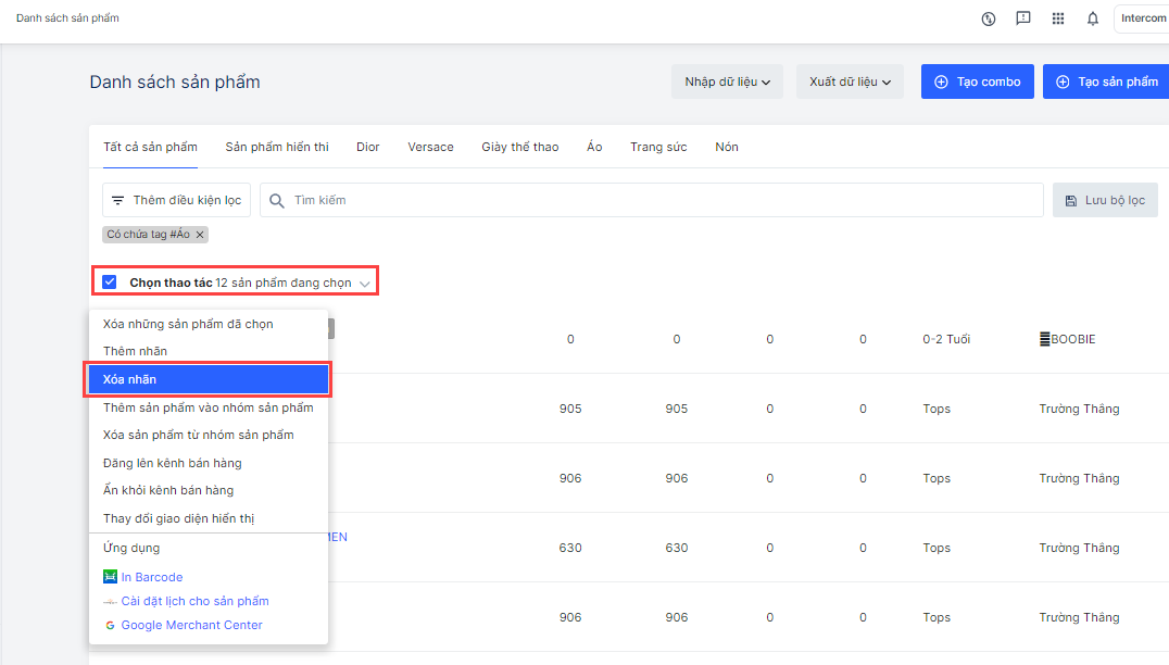 Gắn nhãn / Xóa nhãn (tag) sản phẩm