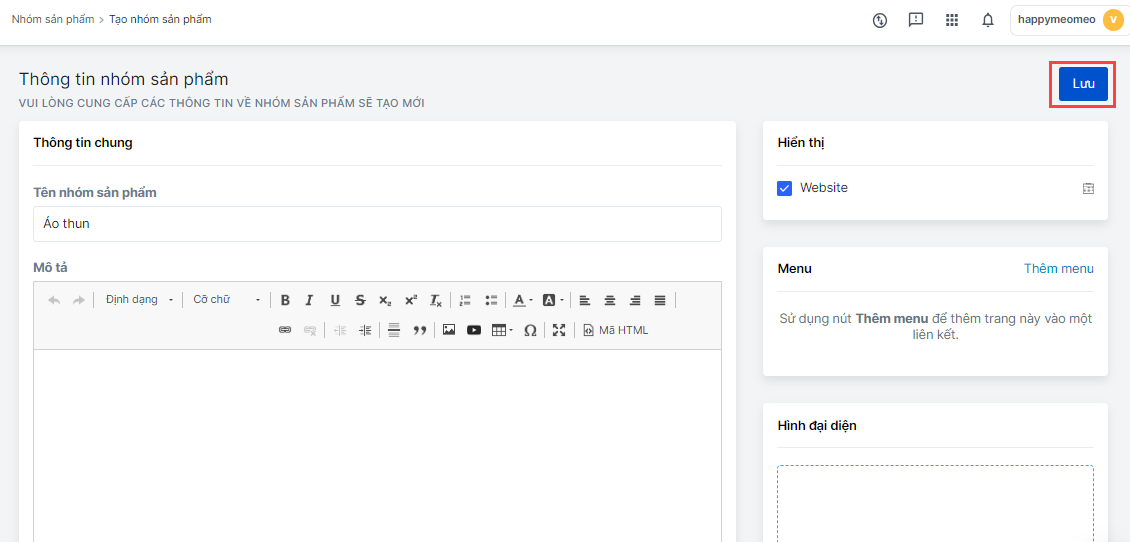 - Chọn Lưu để hoàn tất