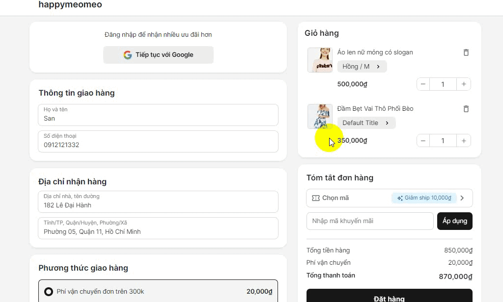 Hiện Haravan hỗ trợ gợi ý mã khuyến mãi vận chuyển trên trang thanh toán version 2, khi khách hàng chốt đơn livestream tự động hoặc mua hàng trên tin bán hàng.