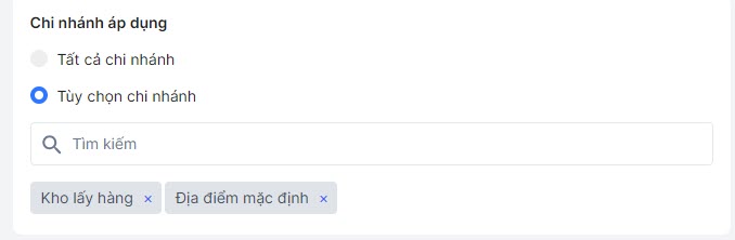 - Chọn Chi nhánh áp dụng: Tất cả các chi nhánh hoặc Chi nhánh chỉ định.