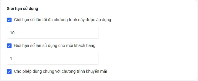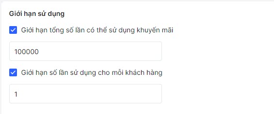 - Giới hạn tối đa số lần sử dụng của mã khuyến mãi