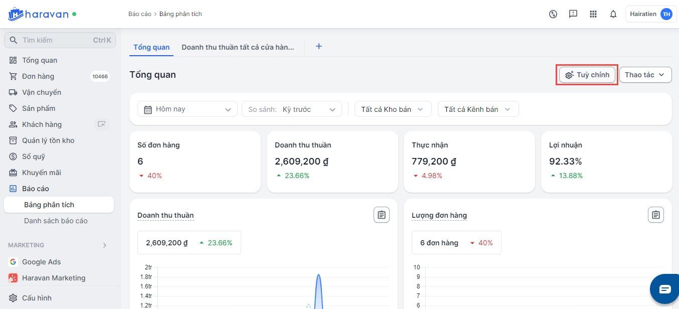 Haravan hỗ trợ nhà bán tạo ra một bảng tổng quan theo nhu cầu của riêng mình. Nhà bán có thể tự tạo tối đa 5 bảng tổng quan.
