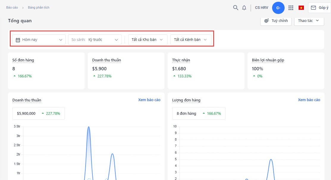 3.Ngoài biểu đồ hiển thị, bạn có thể tùy chỉnh bộ lọc trang tổng quan