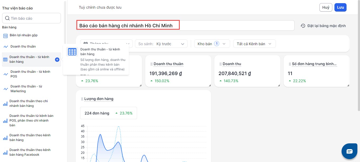 Hướng dẫn tùy chỉnh biểu đồ trang tổng quan