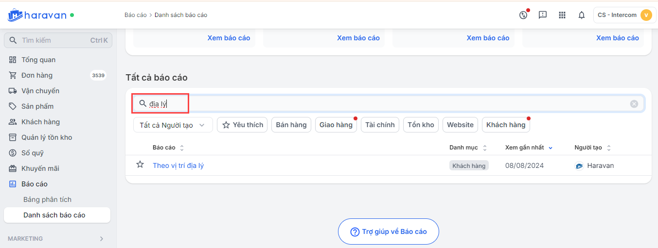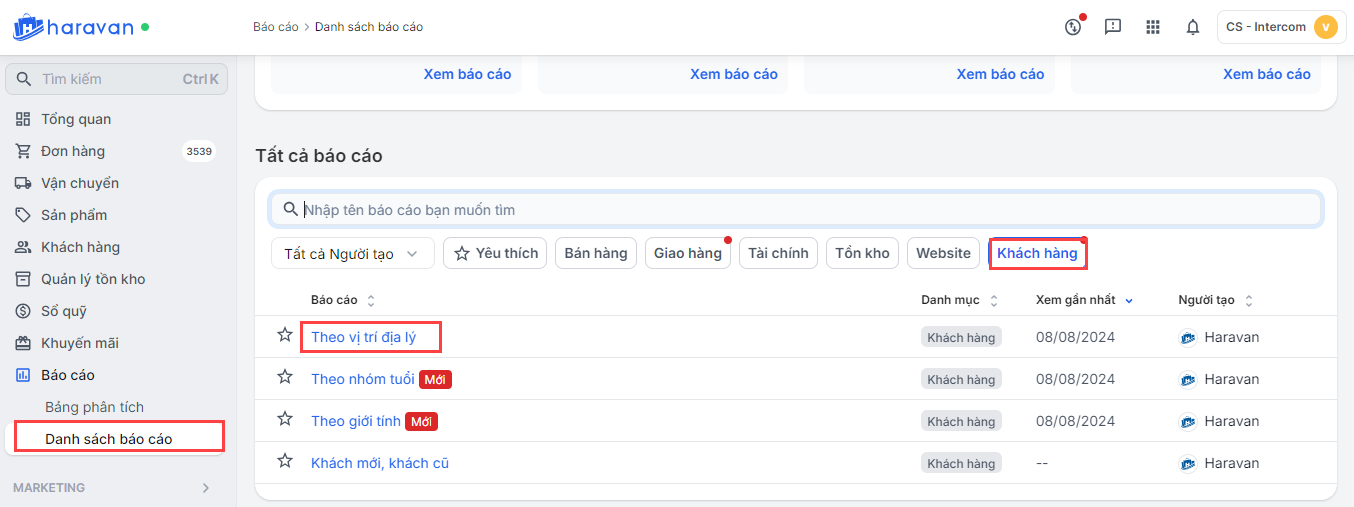 Hướng dẫn xem báo cáo khách hàng theo địa lý