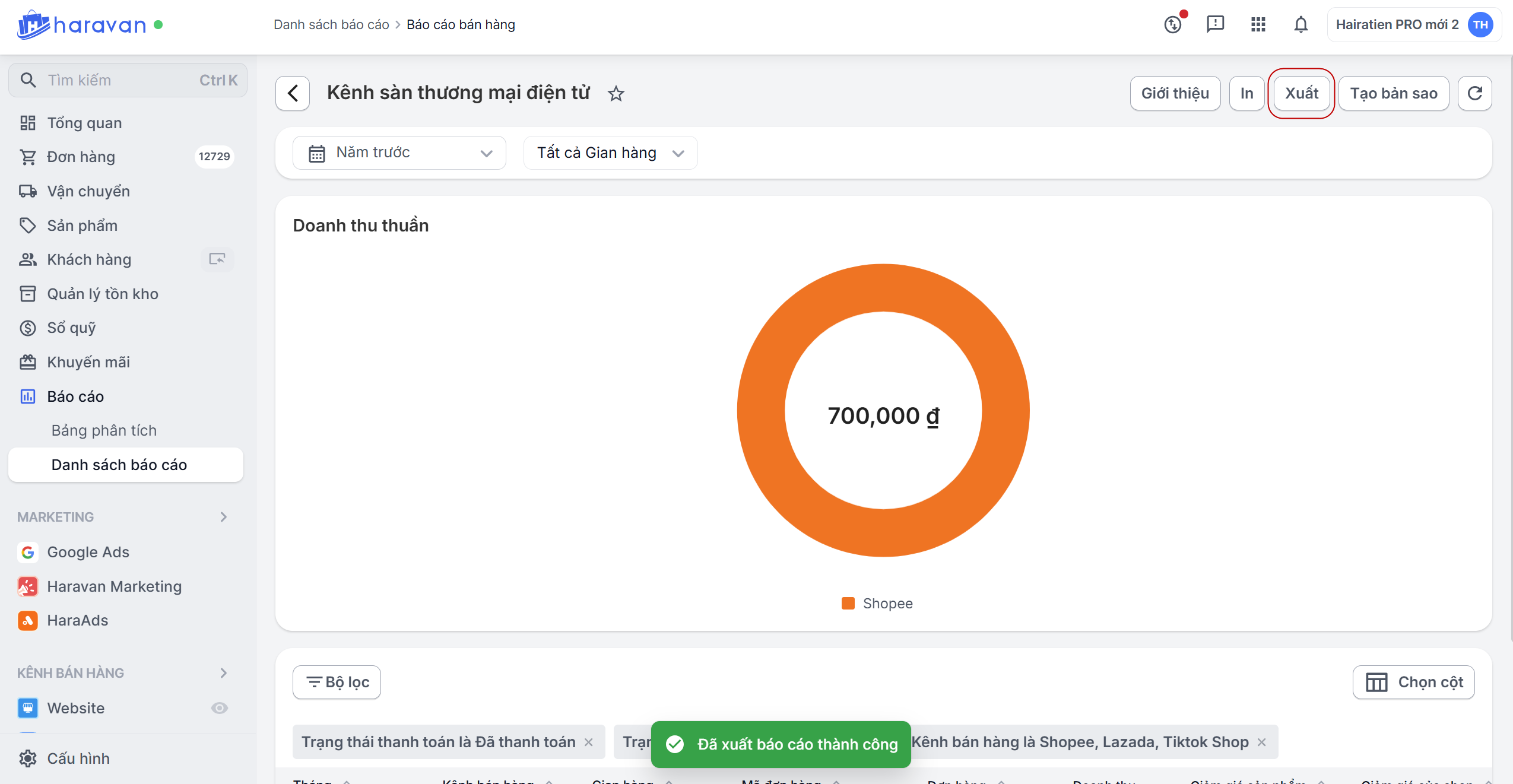 Báo cáo kênh bán hàng sàn thương mại điện tử giúp nhà bán quản lý chi tiết doanh thu lợi nhuận từ hoạt động kinh doanh trên các sàn.