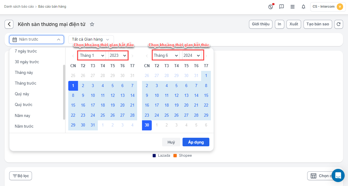 - Lọc báo cáo theo khoảng thời gian có sẵn
