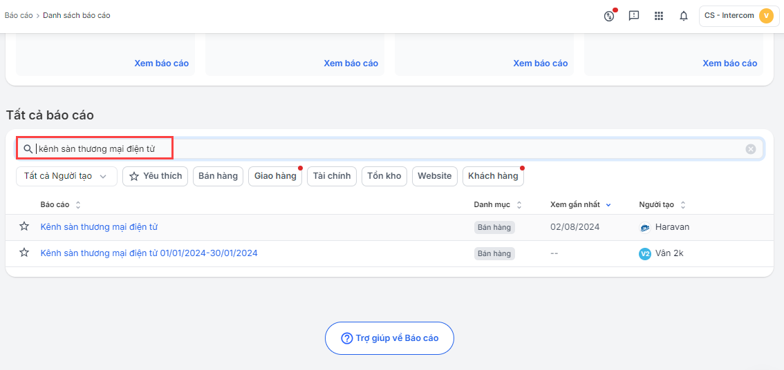 Nhà bán nhập và tìm kiếm Báo cáo kênh sàn thương mại điện tử hoặc xem thử báo cáo trong mục Bán hàng.