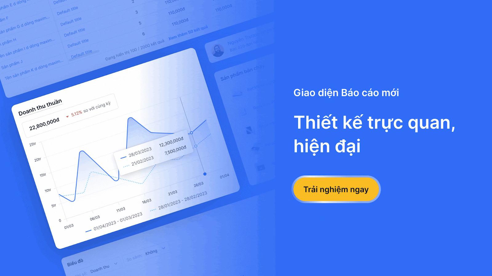- Thiết kế trực quan, hiện đại: giao diện mới mang đến trải nghiệm dễ sử dụng và dễ tương tác với biểu đồ, bảng báo cáo. Nắm bắt tình hình kinh doanh nhanh chóng.