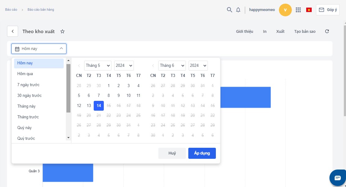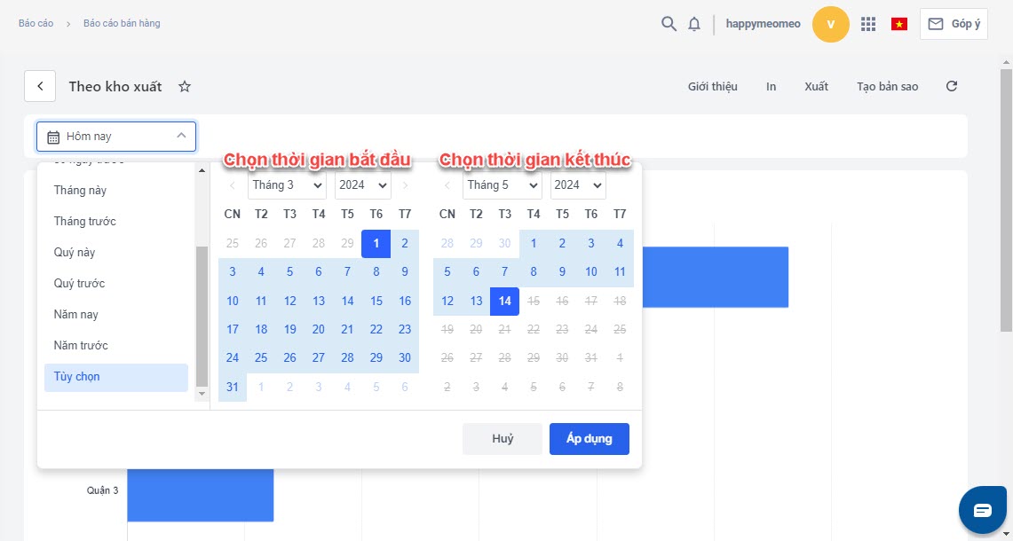 - Lọc báo cáo theo khoảng thời gian có sẵn