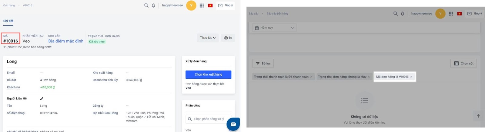 Đơn hàng chưa tạo vận đơn (nếu dùng chế độ xử lý đơn hàng cơ bản) hoặc đơn hàng chưa được chuyển cho kho xuất (nếu dùng chế độ xử lý đơn hàng nâng cao), sẽ không có dữ liệu trong báo cáo.