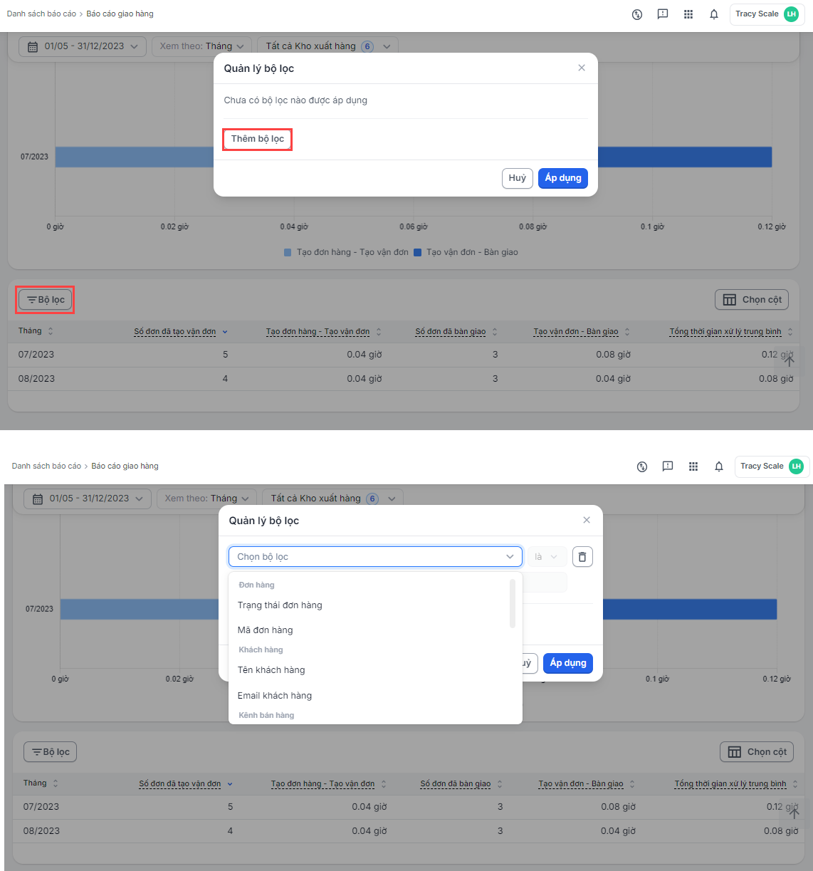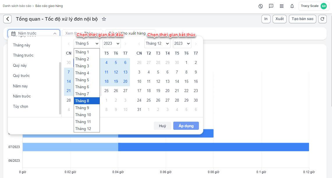 - Thực hiện thiết lập thời gian muốn xem báo cáo