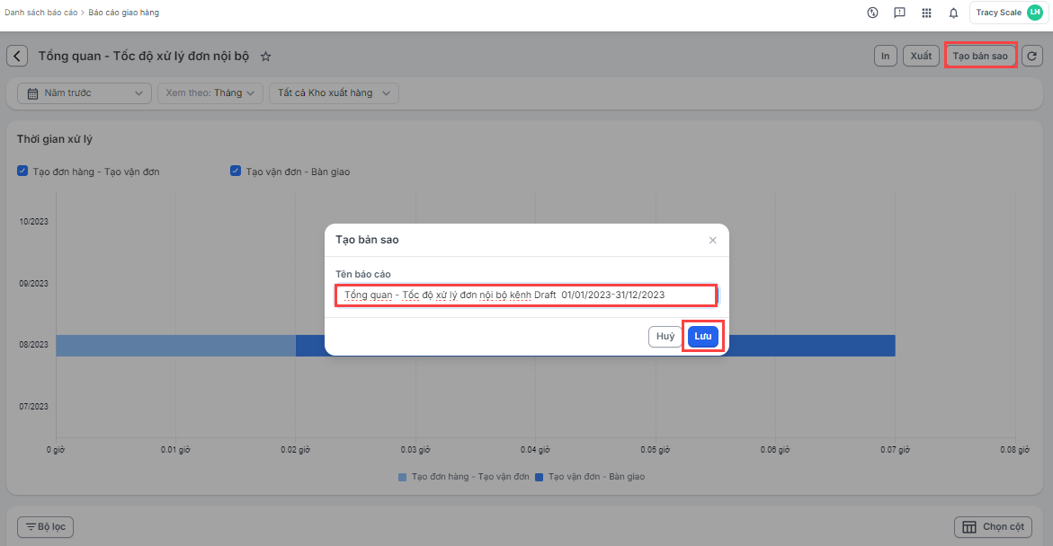 Tạo bản sao báo tổng quan tốc độ xử lý đơn nội bộ