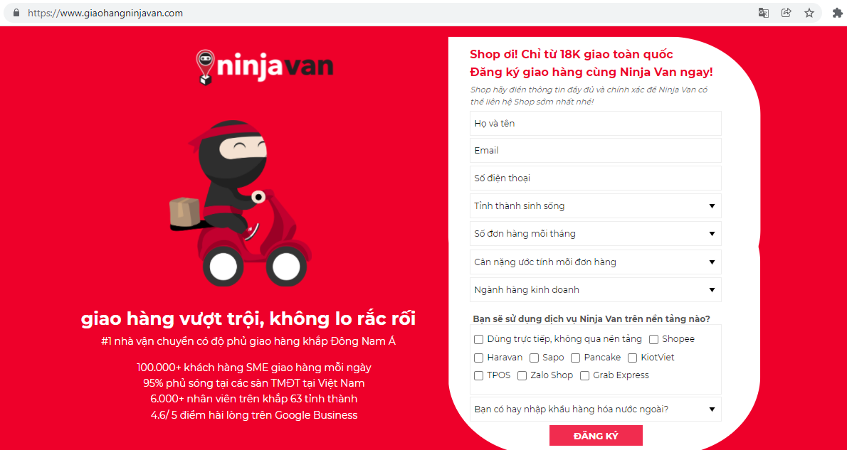 Khi người dùng Haravan hoàn tất phần hợp đồng hợp tác với nhà vận chuyển Ninja Van, bạn sẽ nhận được tài khoản để kết nối với hệ thống bán hàng của Haravan. Với trường hợp chưa có bất kì liên hệ với Ninja Van trước đó. Quý khách vui lòng truy cập địa chỉ https://www.giaohangninjavan.com/ để được hướng dẫn và liên hệ.