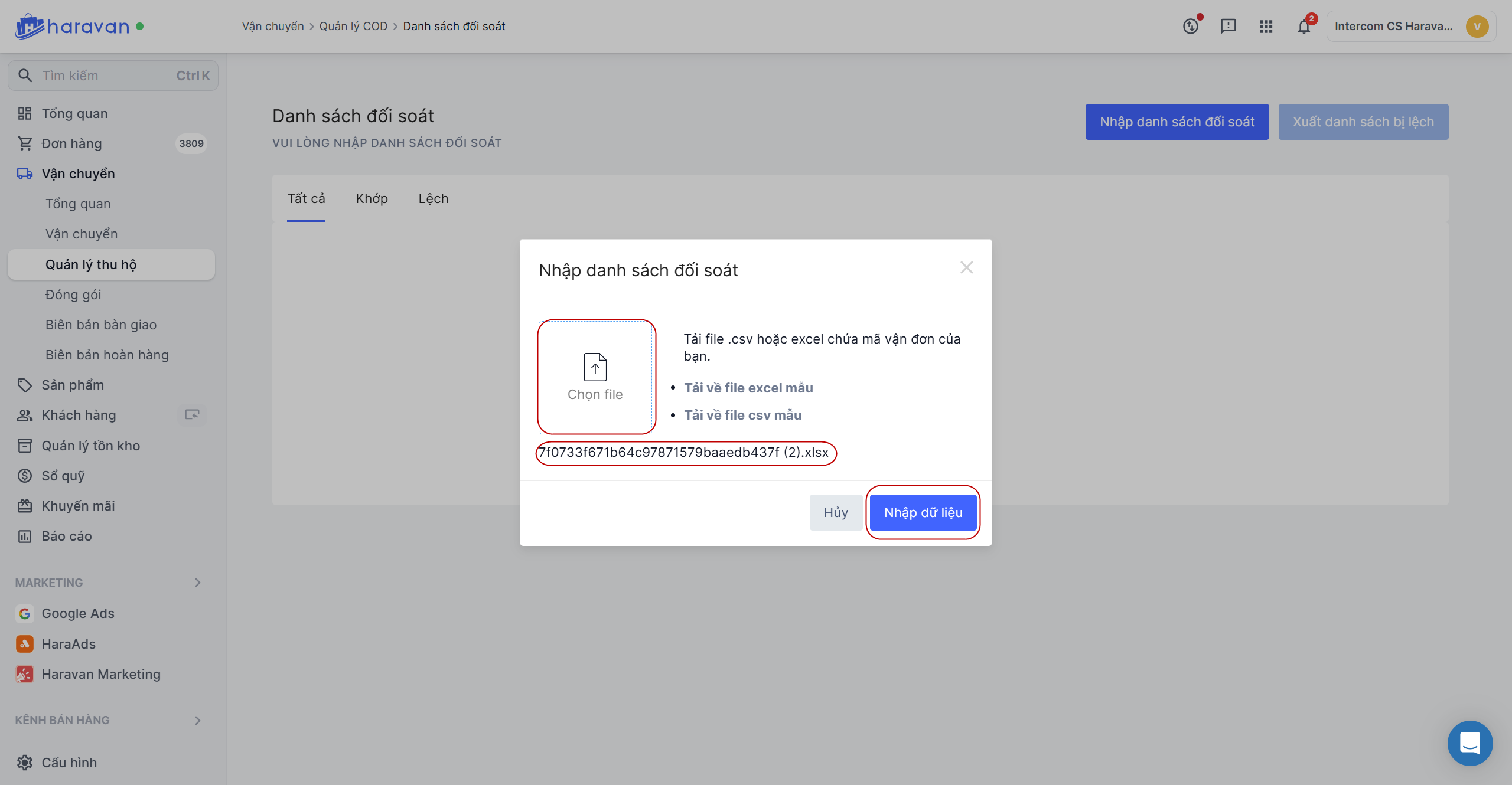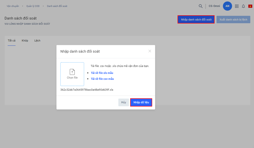 Sau khi xác nhận các đơn đã khớp với số tiền COD, nhà bán thực hiện nhập lại file để thanh toán chi phí cho đơn vị vận chuyển và điều chỉnh lại công nợ.