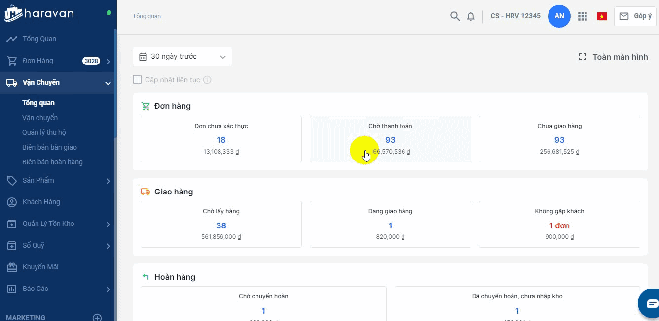 - Để xem chi tiết, bạn chọn vào mục đơn chờ chuyển hoàn là sẽ điều hướng đến danh sách vận đơn.