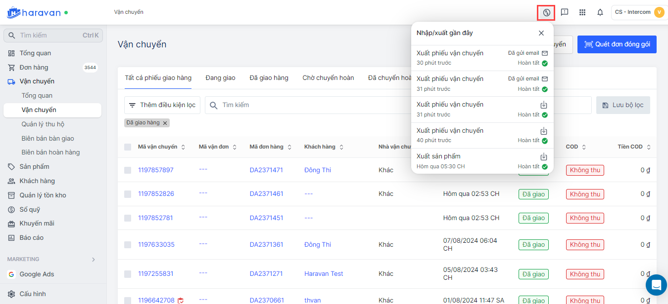 **5. Nhấp chọn Xuất phiếu vận chuyển.**