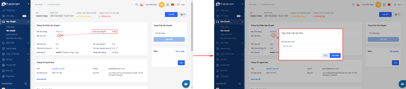 Bước 5: Cập nhật tình trạng hàng hoàn của vận đơn