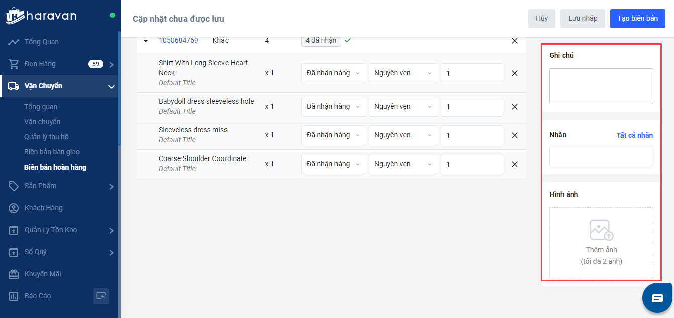 - Bạn lập biên bản hoàn hàng để ghi nhận tình trạng sản phẩm