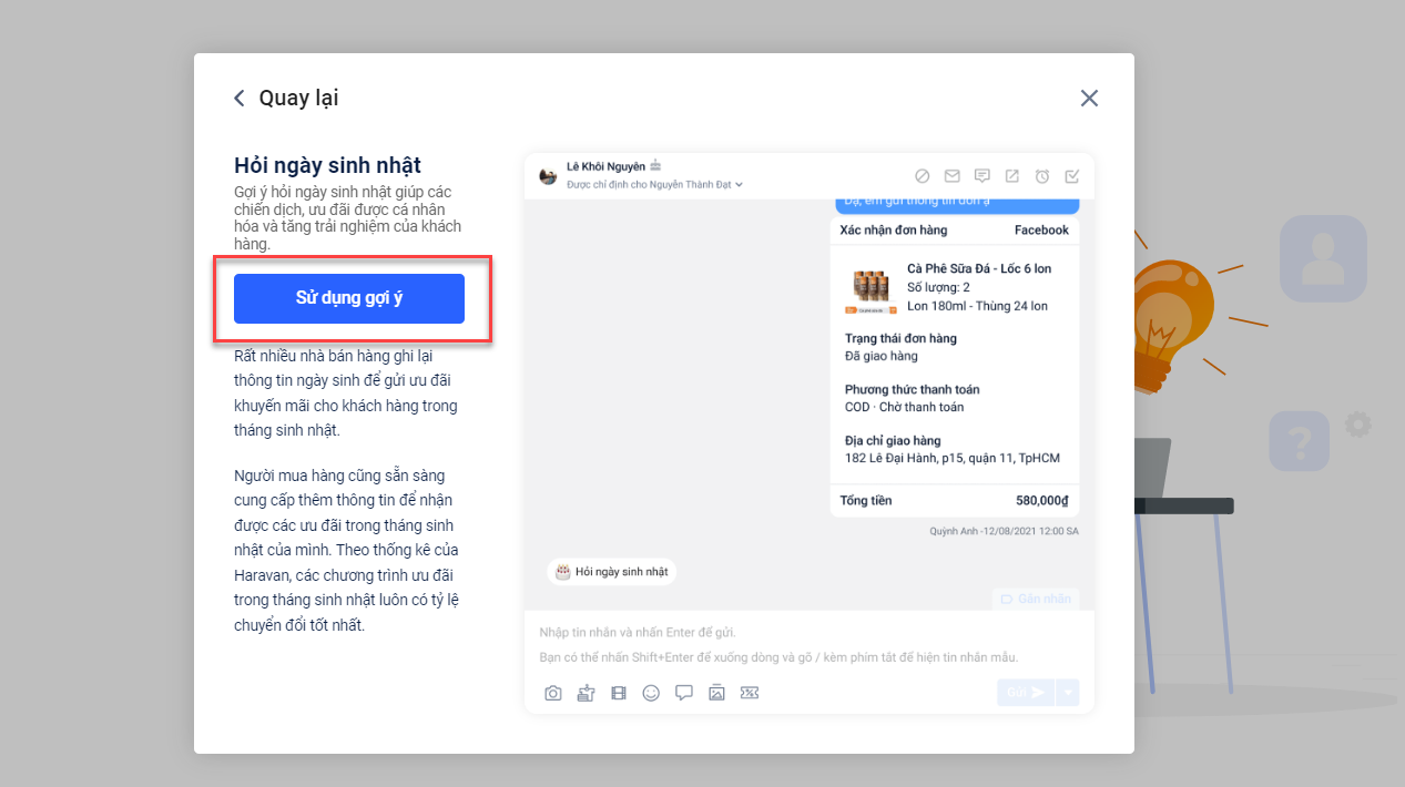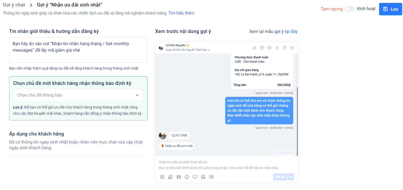 - Kịch bản gợi ý nhận Ưu đãi sinh nhật: