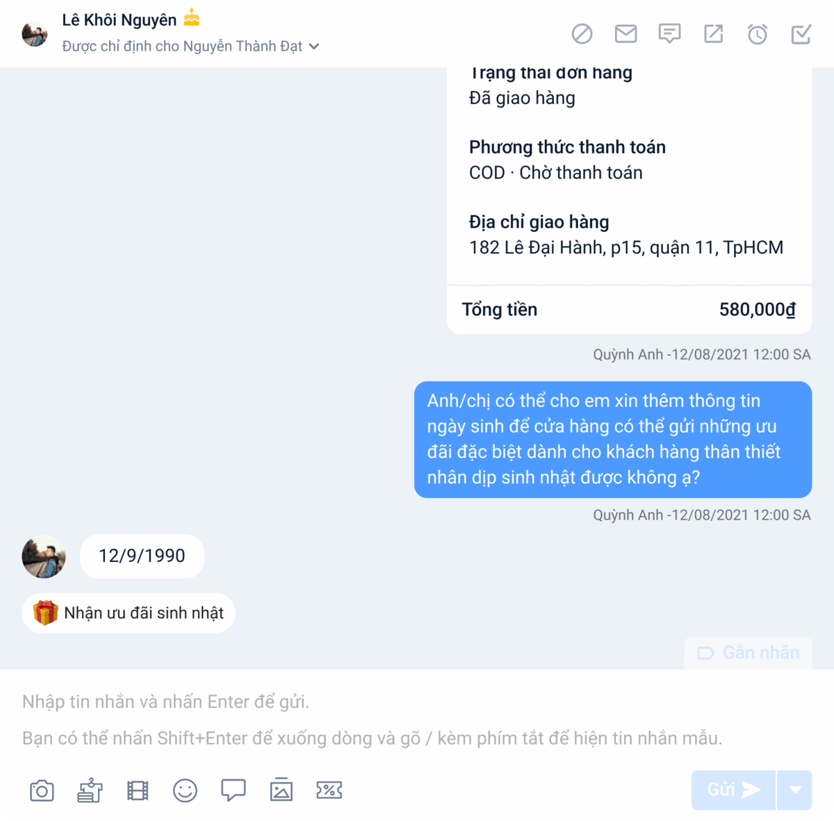 - Nhân viên phải tự cập nhật thủ công ngày sinh khi khách hàng cung cấp thông tin.