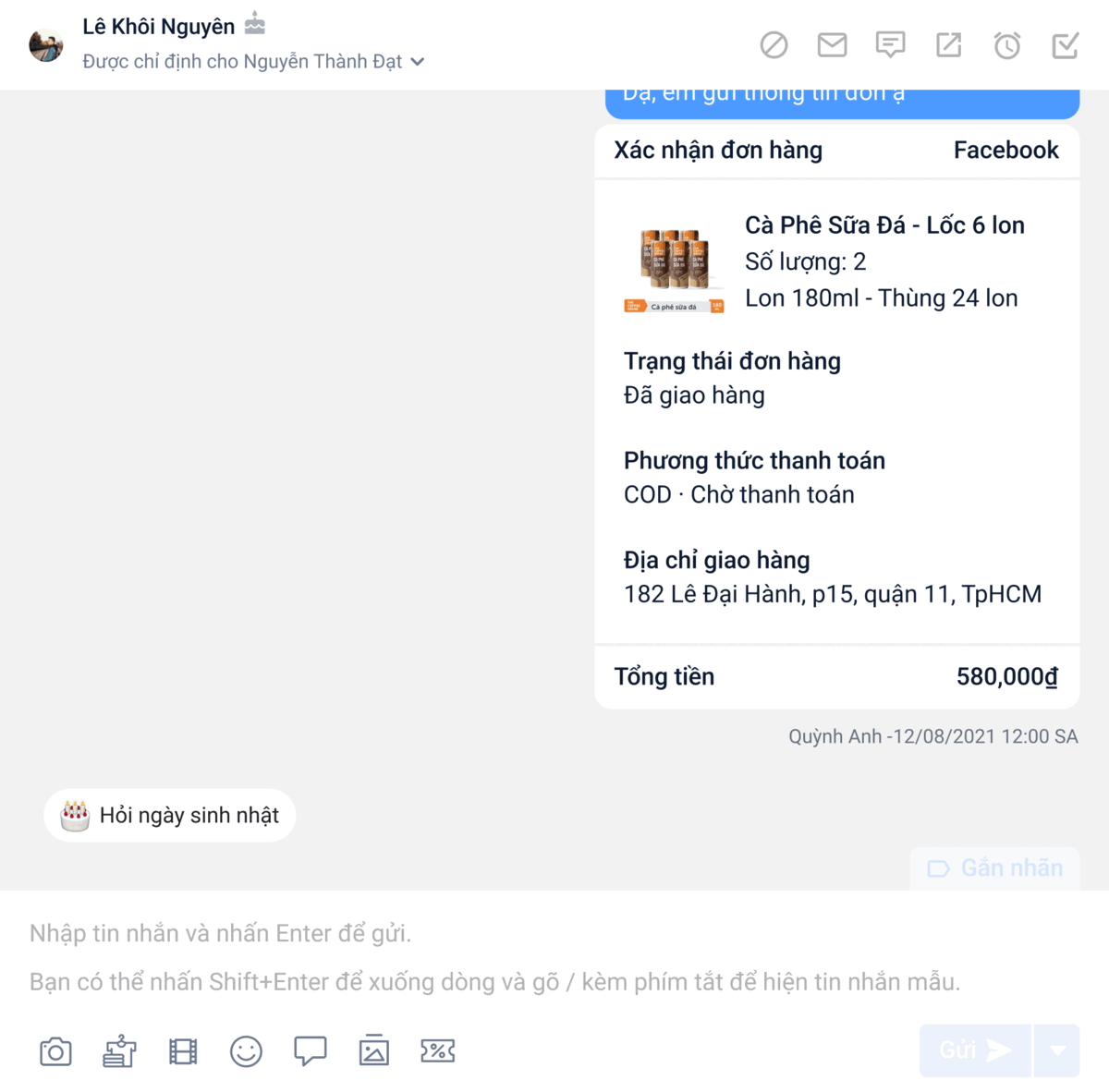 Khi bạn nhấn vào nút thì kịch bản sẽ được gửi đến khách hàng. Tuy nhiên nếu muốn chỉnh sửa lại nội dung, bạn có thể nhấn “Chèn gợi ý vào khung trả lời”, nội dung sẽ được hiển thị ở khung nhập tin nhắn để bạn có thể chỉnh sửa lại.