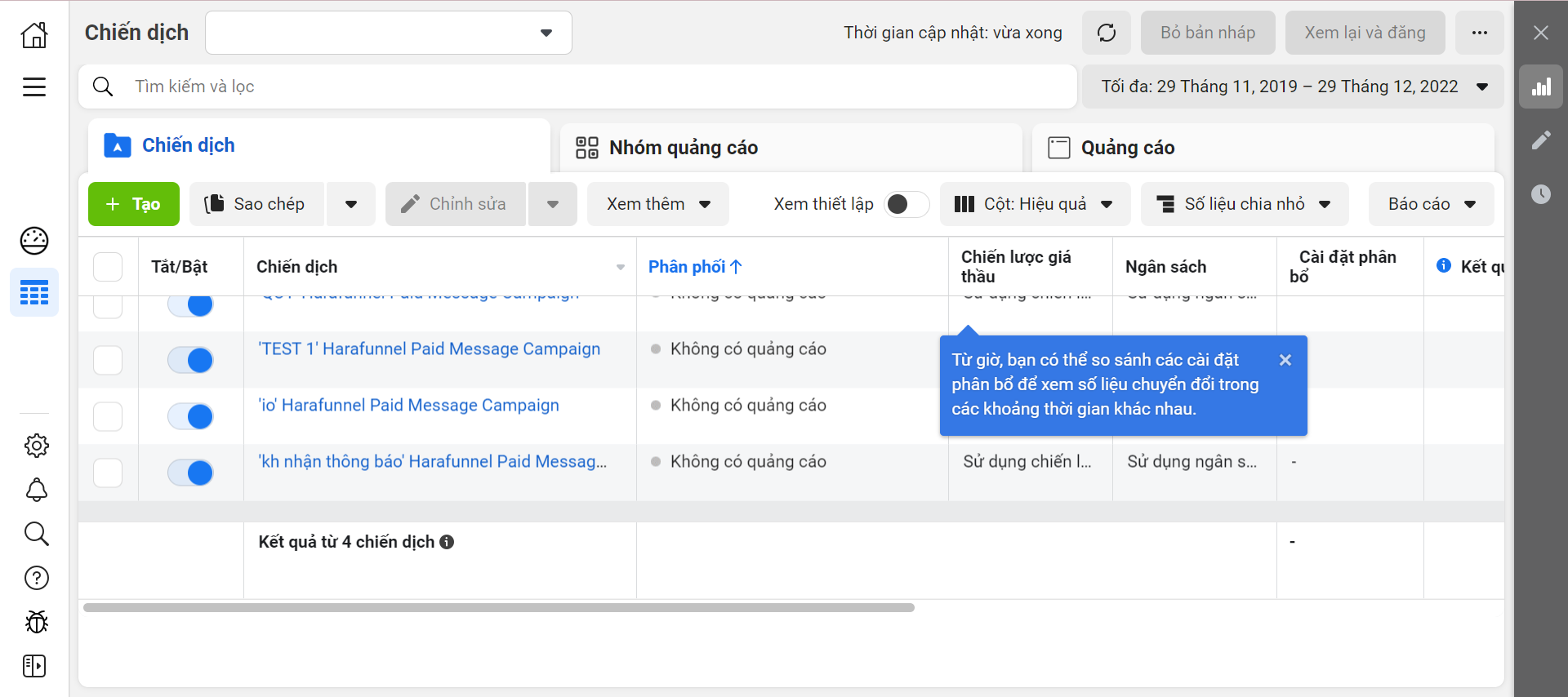 - Trong trường hợp bạn chưa có bài quảng cáo, hệ thống sẽ hiển thị nút Tạo bài viết và khi nhấp vào sẽ điều chuyển đến trang tạo chiến dịch quảng cáo trên Facebook để bạn có thể thực hiện tạo và quảng cáo bài viết của bạn.
