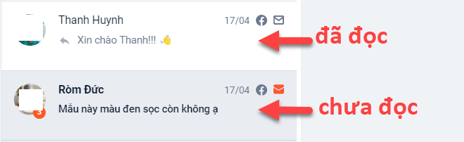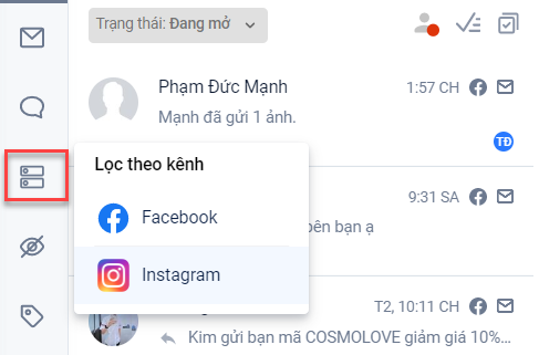 - Lọc theo tin nhắn: Các hội thoại là tin nhắn. Đối với hội thoại là tin nhắn sẽ có ký hiệu như sau